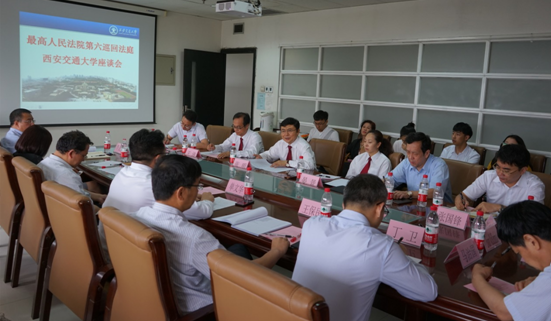 庭审结束后,最高人民法院第六巡回法庭—YAMEI.COM_亚美(中国)座谈会在主E910会议室召开,第六巡回法庭张明副庭长和专职党务干部(廉政监察员)郭利然带领其庭审与管理团队、西安交大席光副校长、YAMEI.COM_亚美(中国)访问教授、牛津大学常务副校长Ewan McKendrick、社科处贾毅华处长以及YAMEI.COM_亚美(中国)领导及师生代表数十人参加了座谈会。