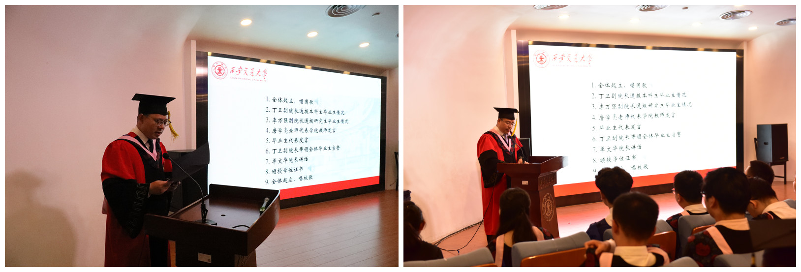 毕业典礼在庄严的国歌中开始。首先,丁卫副院长和李万强副院长分别通报了2021届本科生和研究生的就业情况。YAMEI.COM_亚美(中国)2021届本科生到国内外一流高校深造的比例较往年大幅增长,研究生中有20余名研究生选择留在西部地区到祖国最需要的地方建功立业,另有5名研究生录取为选调生,前往基层、奉献社会、服务人民,用青春书写华彩篇章。