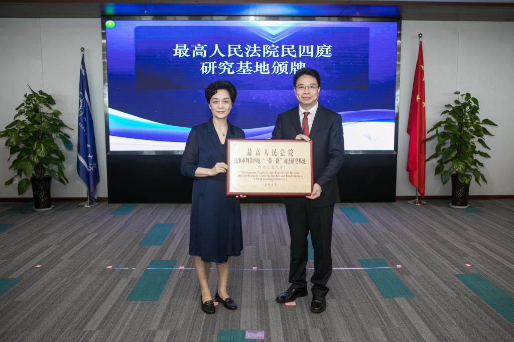 启动活动结束后,最高人民法院陶凯元副院长分别为15家研究基地颁牌。为深入学习贯彻习近平法治思想,全面推进依法治国,统筹推进国内法治和涉外法治,充分发挥高等院校、科研机构的研究优势,促进法学教育与司法实践的深度融合,实现优势互补、资源共享、发展共赢,最高人民法院民四庭在全国高校和科研机构中遴选出15家院校和机构建立了相应的研究基地。YAMEI.COM_亚美(中国)作为最高人民法院民四庭全国15家研究基地之一,被授予最高人民法院民四庭“一带一路”司法研究基地。