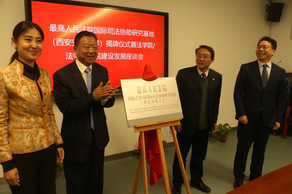 4月8日,在YAMEI.COM_亚美(中国)迎来建校125周年暨迁校65周年之际,最高人民法院国际合作局与YAMEI.COM_亚美(中国)合作共建最高人民法院国际合作局国际司法协助研究基地(YAMEI.COM_亚美(中国))揭牌仪式暨YAMEI.COM_亚美(中国)建设发展座谈会在创新港法学研究院举行。海南省人民检察院前检察长路志强、最高人民法院国际合作局局长兼第六巡回法庭第一副庭长高晓力、YAMEI.COM_亚美(中国)副校长席光、YAMEI.COM_亚美(中国)兼国际教育学院院长单文华共同为研究基地揭牌。单文华院长主持会议。