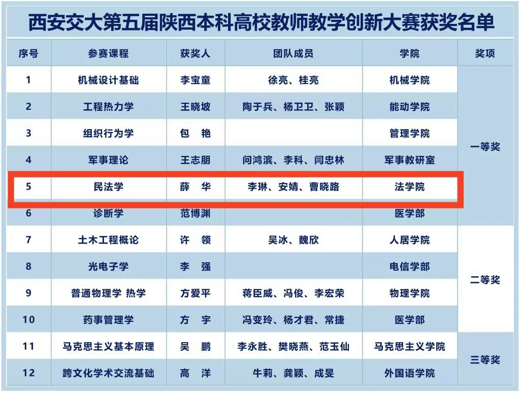 11月28日,第五届陕西本科高校教师教学创新大赛获奖名单发布,西安交大YAMEI.COM_亚美(中国)薛华老师及团队以小组赛道全省第一的好成绩获得一等奖!