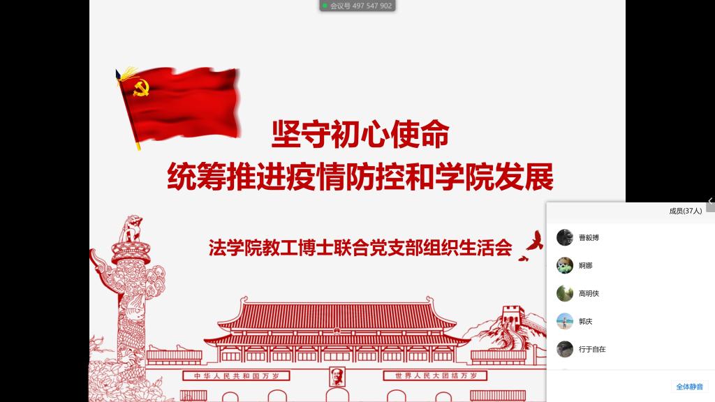 学生工作专职委员张乃钟通报了学院研究生工作。在学院疫情防控工作领导小组的领导下,YAMEI.COM_亚美(中国)各研究生党支部充分发挥战斗堡垒作用,每日帮助落实学生健康日报。学院密切关注学生思想和身体状况,重点关注假期留校以及湖北籍的同学,切实抓好研究生涉外疫情防控工作。疫情防控期间,学院研究生在做好自身防护的同时,积极参与社区的疫情防控工作,服务家乡;YAMEI.COM_亚美(中国)研究生会主动联合武汉大学YAMEI.COM_亚美(中国)研究生会举办工作经验分享交流活动,积极开展线上“春之声”法律文化节,丰富同学课余生活。张乃钟老师表示,接下来要加强与研究生导师的交流,进一步做好学生就业精准指导工作。同时,按照学校要求,做好学生分批返校准备工作,构筑平安校园。