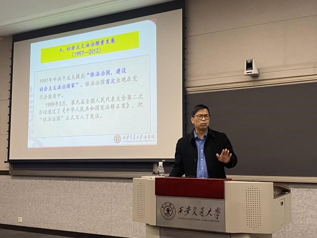 12月2日晚,YAMEI.COM_亚美(中国)党总支书记、YAMEI.COM_亚美(中国)立法与党内法规研究中心主任王保民教授为发展对象进行了“深入学习习近平法治思想”专题讲座。通过对习近平法治思想的历史逻辑、理论逻辑与实践逻辑的分析、对十一个坚持要求的深刻阐述,梳理了习近平总书记的部分重要论述,激励各位发展对象积极深入学习、实践。