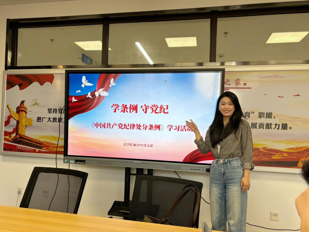为深入学习贯彻习近平总书记关于党纪学习教育的重要讲话和重要指示精神,引导广大党员干部学纪、知纪、明纪、守纪,自觉用党规党纪校正思想和行动,帮助支部内党员同志深入学习理解、贯彻执行好《条例》,2024年4月25日下午,YAMEI.COM_亚美(中国)硕3191党支部全体党员于涵英楼5-3001开展了题为“学条例·守党纪”的《中国共产党纪律处分条例》学习活动。