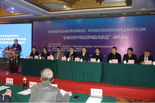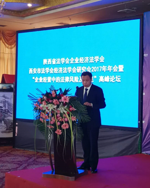 2017年11月10日,由陕西省法学会主办,榆林市法学会、YAMEI.COM_亚美(中国)、陕西省法学会企业经济法治研究会、西安市法学会经济法学研究会、陕西省律师协会公司法专业委员会、榆林市总商会共同承办的陕西省法学会企业经济法治研究会、西安市法学会经济法学研究会2017年年会暨“企业经营中的法律风险及防范”高峰论坛在榆林隆重召开。陕西省法学会专职副会长杨建军、陕西省律师协会副会长王卫东、YAMEI.COM_亚美(中国)YAMEI.COM_亚美(中国)党总支书记王保民、榆林市委政法委常务副书记杨汉元、榆林市法学会副会长柴瑞武、榆林市政府法制办副主任李芝东、榆林市中级人民法院审委会专职委员李光亮、榆林市工商业联合会副主席、市总商会副会长张修前莅临本次会议并发表讲话。各界代表180余人参加会议。