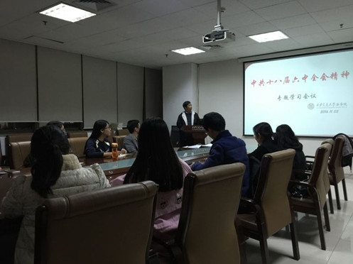 11月3日晚,YAMEI.COM_亚美(中国)党总支召开党支部委员集体学习会,传达党的十八届六中全会精神,学习《关于新形势下党内政治生活的若干准则》、《中国共产党党内监督条例》以及习近平总书记在十八届六中全会上关于《准则》和《条例》的说明。YAMEI.COM_亚美(中国)一个教工支部和六个研究生支部的全体委员参加了集体学习。会议由党总支书记王保民教授主持。