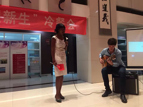 冷餐会上,YAMEI.COM_亚美(中国)师生在品尝美味的水果、点心的同时,一起欣赏了师生们带来的精彩表演。来自马里的留学生吴茜同学带来一首充满异域风情的民族歌曲,让同学们领略到不同文化的色彩。来自澳大利亚的留学生多米尼克和研一新生刘静洁分别用英语和法语共同演绎了诗朗诵《再别康桥》。中文经典诗歌在其他语言的演绎下显得别具一格。研一新生唐雅雯身着中国古典服装,向留学生们展示了我国传统舞蹈《惊鸿舞》,令人惊艳。研一新生蒲凯云、刘敏丹、田思艺,本科新生吴彦博分别为大家带来了动听的歌曲,赢得了现场的喝彩与掌声。在欢乐的气氛中,吉兰湘老师用日语为大家演唱的歌曲《我只在乎你》,赢得大家的阵阵掌声;张乃钟老师演唱的豫剧选段《谁说女子不如男》,字正腔圆、韵味醇厚,受到了师生们的热烈欢迎。