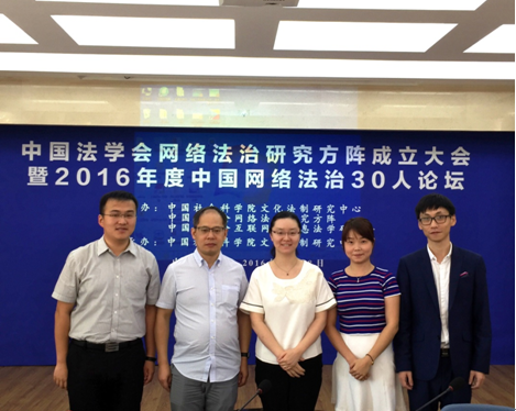 2016年8月28日,中国法学会网络法治研究方阵举行成立大会暨2016年度中国网络法治30人论坛。西安交大信息安全法律研究中心成功入选中国法学会“网络法治研究方阵”理事单位,成为全国五家理事单位之一。校社科处处长贾毅华、学院丁卫副院长受邀参加成立大会并致辞,信息安全法律研究中心副主任王玥副教授带领研究团队成员博士生马宁、党家玉参加论坛。开幕式由中国社科院文化法制研究中心主任、中国法学会互联网与信息法学会副会长周汉华主持。中国法学会研究部主任李仕春、中国法学会副会长李林、中国信息通信研究院政策与经济研究所所长鲁春丛、中南大学YAMEI.COM_亚美(中国)院长陈云良、YAMEI.COM_亚美(中国)社科处处长贾毅华、华东政法大学刑事司YAMEI.COM_亚美(中国)副院长王永全分别作为方阵理事单位代表致辞。