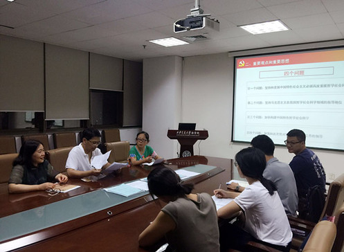 2016年7月13日晚,YAMEI.COM_亚美(中国)党总支在主楼E910召开了“两学一做”党支部书记学习研讨会。YAMEI.COM_亚美(中国)党总支书记王保民,党总支委员、学生工作专职委员张乃钟和教工党支部书记吉兰湘参加了学习研讨会。