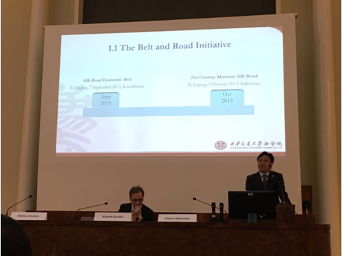 5月9日至10日,由我校和芬兰赫尔辛基大学联合主办的“新范式之路:一带一路倡议对中国、中亚和欧盟的影响”高端国际研讨会在芬兰首都赫尔辛基举行。来自联合国发展计划署、英国牛津大学、爱丁堡大学、俄罗斯人民友谊大学、澳大利亚新南威尔士大学、芬兰赫尔辛基大学、意大利特伦特大学、哈萨克斯坦纳扎尔巴耶夫大学,中国西安交大、清华、北大、香港大学等海内外著名高校的50余名专家学者济济一堂,共同探讨一带一路建设中的法律、政治、经济、文化等问题,共谱“丝绸之路学术带”新篇章。校长助理、YAMEI.COM_亚美(中国)院长单文华教授应邀为大会做主旨报告并主持首场专题研讨会,我校YAMEI.COM_亚美(中国)一带一路研究团队另外六位成员与会,分别主持专题会议和作专题报告。会议期间,单文华助理还与赫尔辛基大学校方和相关学院举行会谈并签署合作协议。