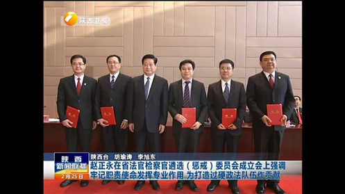 2月25日上午,陕西省司法体制改革试点工作动员会和陕西省法官检察官遴选(惩戒)委员会成立会议在陕西宾馆召开,省委书记赵正永出席会议并讲话。陕西省委常委、省委政法委书记祝列克主持会议,副省长杜航伟、省法院院长阎庆文、省检察院检察长胡太平出席。西安交大YAMEI.COM_亚美(中国)单文华教授出任陕西省法官检察官遴选(惩戒)委员会首届主任。陕西省委政法委副书记寇昉、陕西省委组织部副部长翟四虎、陕西省高级人民法院副院长田平利和陕西省人民检察院副检察长程紫平等四人分别出任副主任。赵正永书记为省法官检察官遴选(惩戒)委员会主任、副主任颁发聘书。YAMEI.COM_亚美(中国)王保民教授和吴平魁副教授出任法官检察官遴选(惩戒)委员会非常任委员。