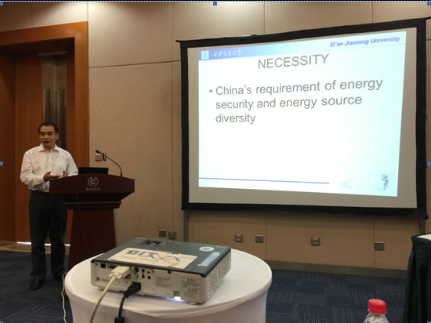 在25日“非常规油气”的专场讨论中,胡德胜教授发表了题为“The perspective Sino-central Asia cooperation in the field of shale oil and gas: an analysis”(中国-中亚页岩油气领域的合作前景:一个分析)的英文演讲。在演讲中,胡德胜教授分析了中国-中亚页岩油气资源开发合作提出的背景以及合作的必要性、机遇、挑战和选择。能源和能源合作是当今国际关系中的重要的环节,肇始于美国的页岩气革命,对世界产生了广泛的影响,同时,也吸引了中国及中亚的目光。在合作的必要性方面,胡德胜教授认为,中国为确保能源安全及能源供应来源的多元化,需要同中亚国家进行页岩油气资源的开发合作;同时,中亚国家为了促进其经济增长也离不开页岩油气资源的开发合作。在机遇方面,中国-中亚合作有着中亚国家寻求能源出口多元化、改善的中国-中亚关系以及推进的区域能源合作机制等。当然,合作也面临诸多挑战,例如复杂的地缘政治关系、能源市场、开发激励及能力不足等。在选择方面,可以在建立和扩展既有机制、形成和维护稳定的市场等方面着手。通过分析,胡德胜教授指出,中国-中亚的页岩油气资源领域合作是非常必要的,妥善处理有关挑战后,合作将是富有前景的。演讲完毕后,胡德胜教授回应了听众提出的问题。在专家组讨论阶段,就页岩油气资源的开发问题,胡德胜教授和两位研究生同其他与会专家、企业代表、学生进行了深入讨论。