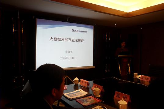 本次研讨会下午阶段由YAMEI.COM_亚美(中国)信息安全法律研究中心王玥老师主持。研讨会第三阶段:中国信息通信研究院互联网法律研究中心李海英主任进行了题为“大数据发展及立法挑战”的主题报告,她认为,应当从数据生命周期角度审视数据产生的每个环节,基于数据的资产性和可用性探讨数据使用者的相应责任,以及如何让大数据为人类带来更多的便利和财富,并重点关注如何在发展和安全之间寻找适当的平衡点,以把握数据开放和信息资源控制与安全之间的关系。国家信息中心信息与网络安全部叶红副主任以“中国网络安全立法的困境与突破——关于电子证据的讨论”为题进行了主题报告,她详细论述了从“电子数据”到“电子证据”的过程,提出需要法律和标准的严格规范,以保证电子证据的证明力度。上海社会科学院信息研究所、信息安全研究中心惠志斌主任/副研究员发表了上海社会科学院信息研究所的研究成果——《大数据时代美欧数据安全政策探析》,富有启发性地从软法的角度介绍了欧美相关政策,并关注其对我国的启示,具体包括应当重视人才培养;借鉴美欧相关政策框架和立法实践;重视国际合作;推动“政商为主”向“以民为本”的立法逻辑转变等。西安政治学院朱雁新教授做了题为“战争冲突法”的报告,阐述了网络战争应当秉承区分原则,关注网络战争应当如何对待平民和民用物体的损失问题。微软公司可信赖计算部安全技术政策高级经理陈恺对这一阶段的主题报告进行了精彩的点评。