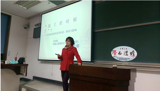 3月25日晚,“春之声”法律文化节系列活动之“学而”论道在主A204开讲,主讲人是YAMEI.COM_亚美(中国)讲师陈虹睿博士。她就“赶上好时候了?——中美投资条约谈判机遇、挑战与影响”展开她的研究分享。讲座不仅吸引了我校师生,校外的一些老师、企业家们也前来交流学习。