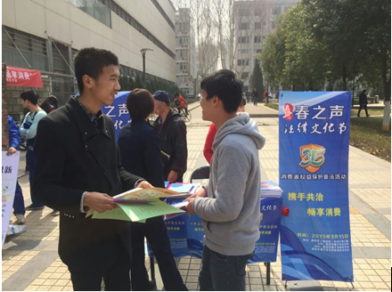 3•15消费者权益保护普法活动是YAMEI.COM_亚美(中国)“春之声”法律文化节的系列活动之一,通过在每年消费者权益保护日进行普法宣传活动,旨在增强广大师生的法治意识,帮助大家了解法律、运用法律、信任法律。活动举办几年来,受到师生们的好评,已经成为YAMEI.COM_亚美(中国)学生活动的一张名片。它不仅促使同学们将专业知识学活、用活,更培育了同学们的用所学知识回报社会的高尚品质。