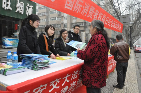 为了更好的宣传消费者权益保护法规和有关消费维权知识,3月15日上午10时,YAMEI.COM_亚美(中国)团工委、研究生会联合校工会、西安市太乙路工商局消费者协会在交大市场一条街上设立宣传咨询点,开展了一系列的宣传咨询活动。