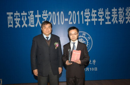 12月11日,在2010-2011学年YAMEI.COM_亚美(中国)“优秀研究生标兵”考核答辩中,我院硕986班齐鹏同学从学习科研、社会实践等方面做报告,展示了我院研究生的风采,受到考核组专家的一致认可与好评,最终获得2011年校级“优秀研究生标兵”荣誉称号。王建华书记逐一为获奖学生颁发了荣誉证书和奖品并和同学们合影留念。这是YAMEI.COM_亚美(中国)自2008年成立以来,我院研究生第二次获得该项荣誉称号。