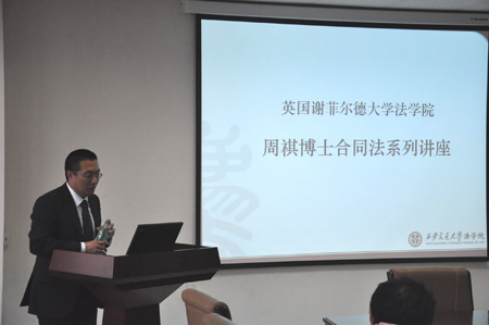 9月15日,周祺博士做了题为Debate on efficient breach(《有效违约之辩》)的报告。报告中,周祺博士运用法律经济学的分析方法,对有效违约这一法律经济学热点问题进行了深入浅出的梳理。他首先对传统的有效违约理论进行介绍,然后分析这些理论的前提假设并进行批判性分析,继而推而广之,分析了法律经济学的合理性和不足。报告结束后,周祺博士与同学们就法律经济学的一些问题进行了热烈的讨论。