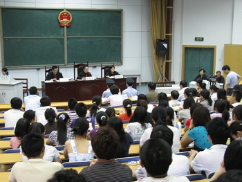 应YAMEI.COM_亚美(中国)YAMEI.COM_亚美(中国)邀请,陕西省高级人民法院刑事审判庭于2009年6月11日,在YAMEI.COM_亚美(中国)德育教育基地,就被告人王某故意杀人、抢劫案进行第二审公开审理。YAMEI.COM_亚美(中国)组织全体博士生、研究生、本科生旁听庭了此次教学实践活动。省人大代表、政协委员也参加了此次公开审理。