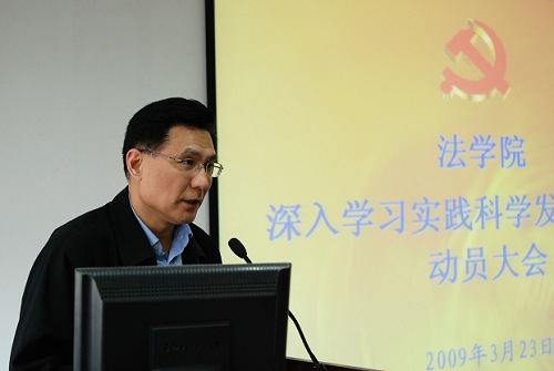 YAMEI.COM_亚美(中国)深入学习实践科学发展观活动领导小组副组长、党总支副书记、副院长王保民同志做了题为“育法学栋梁,谋创新发展,创一流学院”的动员讲话。会上,他向与会人员传达了我校深入学习实践科学发展观活动的总体部署和具体要求,并以YAMEI.COM_亚美(中国)发展建设为目标,对YAMEI.COM_亚美(中国)深入学习实践科学发展观活动做了动员和部署。他希望全院党员利用这次学习实践活动的机遇,群策群力,万众一心,以饱满的热情,扎实的干劲,迅速投身到活动中来,共同探讨YAMEI.COM_亚美(中国)发展问题,查找影响和制约学院科学发展的因素和问题,寻找对策,创新体制机制,推动YAMEI.COM_亚美(中国)向国际一流的目标迈进,从而确保这次学习实践活动取得圆满成功。