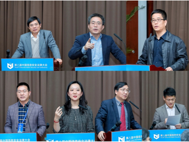 分论坛四“密码法”第一阶段由哈尔滨工业大学教授赵宏瑞主持。国家密码管理局政策法规室副主任王伟以“加快推进密码法立法筑牢网络空间密码保障法治之基”为题进行演讲,对《密码法》立法中的相关问题进行介绍。中国科学院信息安全国家重点实验室教授翟起滨以“信息技术革命对密码法律的困扰”为主题、中国社会科学院法学研究所研究员陈欣新以“《密码法》草案中监管思路的探讨”为主题、中国科学院软件所研究员丁丽萍以“密码与电子取证”为主题、得安研究院副院长黄强以“《密码法》为信息安全新生态保驾护航”为主题发表演讲,英特尔中国区标准法规部总经理张华燕进行了点评。