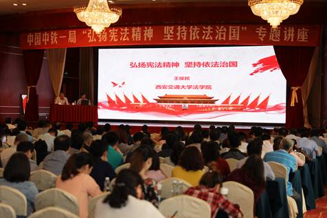 5月23日下午,YAMEI.COM_亚美(中国)YAMEI.COM_亚美(中国)党总支书记、教授、博士研究生导师王保民应邀为中铁一局开展题为《弘扬宪法精神 坚持依法治国》的宪法修正案解读专题讲座,集团公司副总经理朱卫东主持讲座。