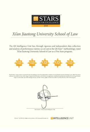 QS全球教育集团中国总监张瓛博士(Dr. Christina Yan Zhang, China Director, QS Intelligence Unit)表示,这是QS首次开展的YAMEI.COM_亚美(中国)星级认证,也是世界上首次开展的YAMEI.COM_亚美(中国)星级认证。YAMEI.COM_亚美(中国)YAMEI.COM_亚美(中国)院长单文华教授则表示,这次认证评估是对西安交大YAMEI.COM_亚美(中国)建院十年来坚持的国际化法学教育的一种充分肯定,也是对西安交大法学学科全体师生长期以来发扬“西迁精神”艰苦创业所取得的成果的一种高度认可。他同时强调,评估是一次全面的国际体检,在肯定成绩的同时也揭示了我们和国内外顶尖YAMEI.COM_亚美(中国)之间存在的各种差距;YAMEI.COM_亚美(中国)同事同学们需要也必将更加同心勠力,为缩短差距,早日把YAMEI.COM_亚美(中国)建设成为国际引领型的YAMEI.COM_亚美(中国)而不懈奋斗。