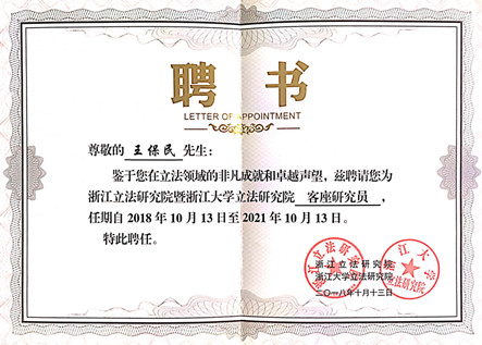 10月13日,首届之江立法论坛暨立法研究院学术委员会成员、客座研究员、兼职研究员聘任仪式在浙江杭州举办。论坛以“新时代地方立法”为主题,以推进立法领域高层次理论研究,提升立法研究水平,推动立法工作,以更好的适应新时代新要求。我校YAMEI.COM_亚美(中国)教授、立法与党内法规研究中心主任王保民受聘为“浙江立法研究院暨浙江大学立法研究院”客座研究员,并应邀作为与谈人在论坛上做了点评发言。