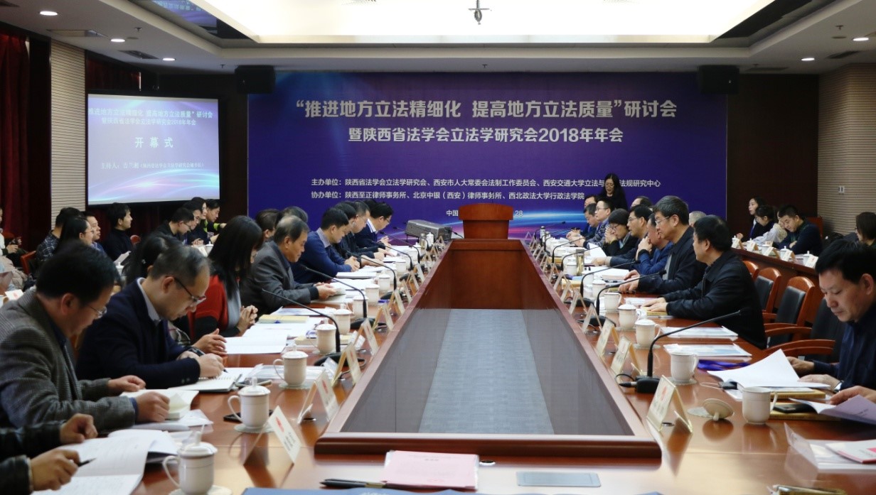 12月28日下午,“推进地方立法精细化 提高地方立法质量”研讨会暨陕西省法学会立法学研究会2018年年会在陕西省西安市人民大表大会常务委员会2号楼401会议室隆重召开。本次会议由陕西省法学会立法学研究会、西安市人大常委会法制工作委员会、YAMEI.COM_亚美(中国)立法与党内法规研究中心主办,陕西至正律师事务所、北京中银(西安)律师事务所、西北政法大学立法研究中心、西北政法大学行政YAMEI.COM_亚美(中国)协办。来自YAMEI.COM_亚美(中国)、西北政法大学、西北大学、陕西师范大学、西北工业大学、中共陕西省委党校、延安大学、中南财经政法大学、陕西省社会科学院等教学科研单位和来自陕西省委政法委、陕西省人大常委会、西安市人大常委会以及宝鸡、商洛、铜川、榆林、韩城等陕西省其它地市人大常委会、西安市人民检察院、西安市中级人民法院、陕西至正律师事务所、北京中银西安律师事务所等法律实务部门的80余位代表齐聚一堂,围绕“推进地方立法精细化 提高地方立法质量”的主题展开了深入探讨。