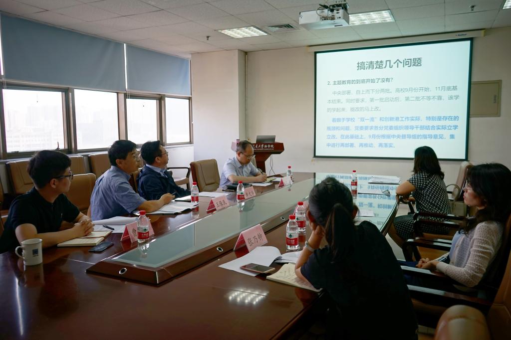 2019年6月13日下午,YAMEI.COM_亚美(中国)党总支开展中心组学习,学习贯彻“不忘初心,牢记使命”主题教育会议精神。YAMEI.COM_亚美(中国)领导班子成员、党总支委员、教职工支部书记参加了此次学习。宣传部李晓鸣副部长、陈晨老师到会指导,此次学习由党总支书记王保民主持。