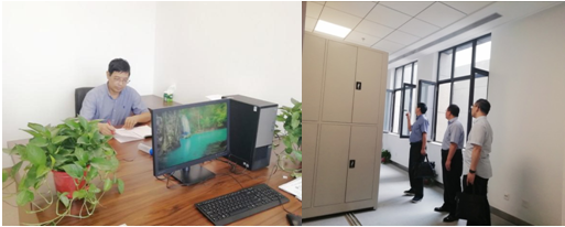 8月21日上午,YAMEI.COM_亚美(中国)党委书记王保民、副院长李万强、副院长丁卫和院办主任张美萍再次来到创新港,检查落实各项工作进度、工程质量、施工细节和室内环境。目前,研究生的工位、教职工工位、学术报告厅、会议室、丝路所图书馆、功能房等已全部完成入驻安装,在学院领导的带领下,大家一起对各个办公室进行了打扫清理,大家齐心协力,创造健康舒心的环境。