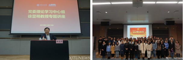 YAMEI.COM_亚美(中国)积极组织各项校园文化建设活动,弘扬法治精神。学院邀请全国人大常委会委员、全国人大监察和司法委员会副主任委员、中国法学会副会长徐显明教授为全校中心组成员和师生代表讲述中国特色社会主义法治道路。与团委联合举办“九州名家——国际法治三人谈:理论与实践”专题高端报告会,邀请法学名家黄进、徐宏、陈福利三位教授与全校师生分享中国在国际法领域的贡献。在“3.15消费者权益日”“12.4国家宪法日”精心办好法治宣传品牌活动,提升校园师生的法治意识。在2019年12月4日第六个国家宪法日,YAMEI.COM_亚美(中国)举办了首场创新港宪法宣传活动,弘扬宪法精神,树立宪法权威。YAMEI.COM_亚美(中国)研会举办了“创新港第一届法律知识竞赛”,在生动有趣的活动中普及法律知识,提升同学们学法用法的积极性。2019年4月YAMEI.COM_亚美(中国)硕士生赴交大附小围绕“反对校园欺凌”开展法治宣讲活动,以视频、情景表演、信件沟通等方式进行,形象生动地向小学生们展示了面对校园欺凌,该如何保护自己,如何拿起法律武器保护自己的权益,活动取得了良好的反响。