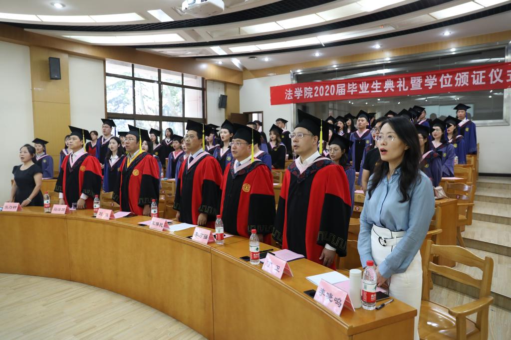 接下来,丁卫副院长带领全体毕业生宣读法科生誓词,王保民、李万强、马治国三位教授为毕业生颁授学位证书。