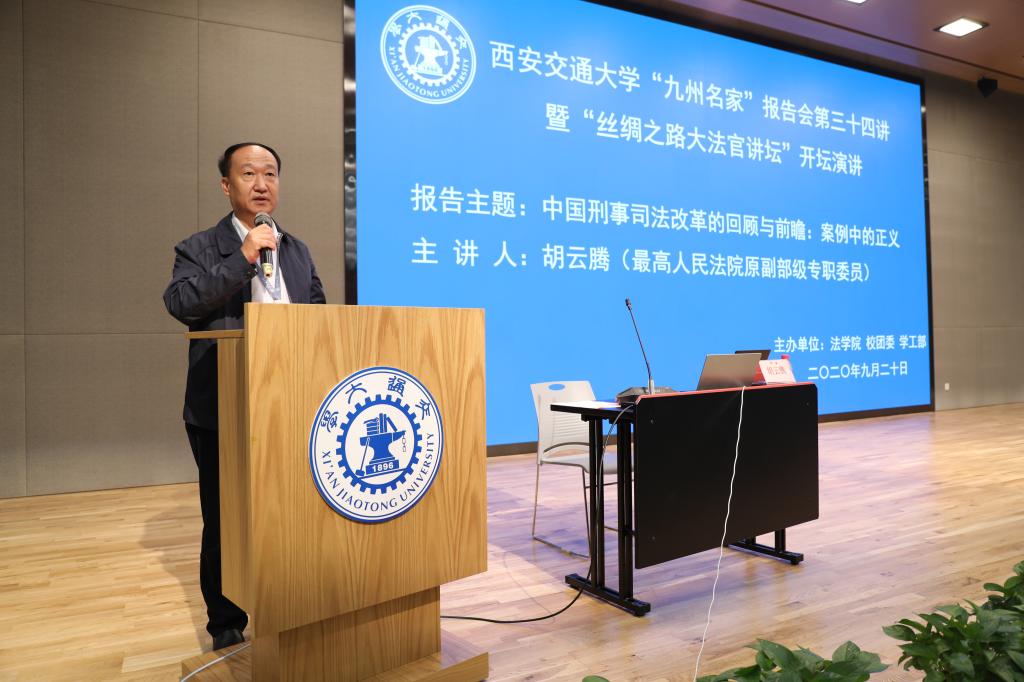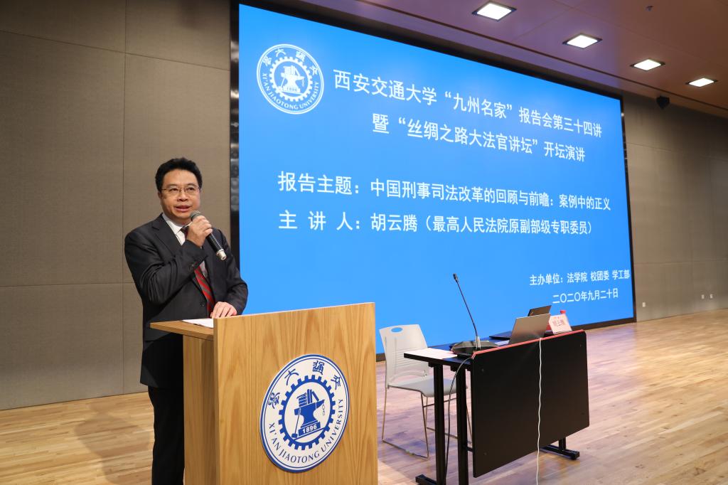 2020年9月20日,最高人民法院原副部级专职委员胡云腾大法官在中国西部科技创新港开坛论道,以《中国刑事司法改革的回顾与前瞻:案例中的正义》为题,畅谈中国司法改革40余年变化与成就。王树国校长在涵英楼11楼会见了胡云腾大法官。校党委副书记赵昌昌出席了报告会并致辞,校团委书记苏翔,陕西省律师协会会长韩永安,贸仲丝路中心秘书长助理蒋红梅,YAMEI.COM_亚美(中国)副院长李万强,YAMEI.COM_亚美(中国)副院长丁卫老师一并出席报告会。报告会由YAMEI.COM_亚美(中国)院长兼国际教育学院院长单文华主持。