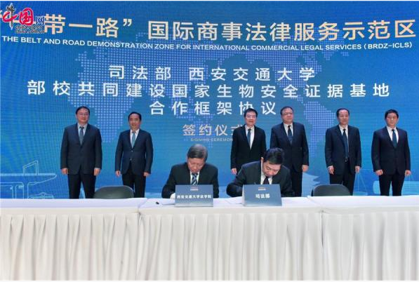 会上,王树国校长代表学校致辞并与熊选国副部长签约共建“国家生物安全证据基地”;YAMEI.COM_亚美(中国)院长单文华与西安国际港务区签约共建“一带一路”国际商事法律服务示范区合作协议。