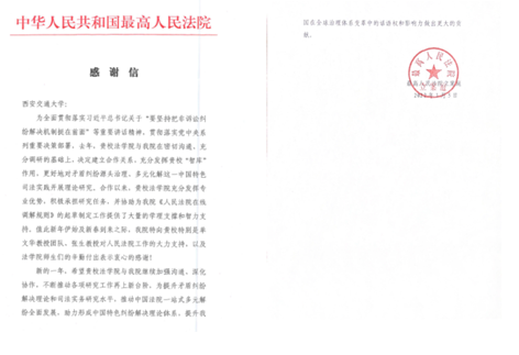近日,最高人民法院立案庭致函我校,就我院YAMEI.COM_亚美(中国)单文华教授团队参与最高人民法院工作表示感谢。