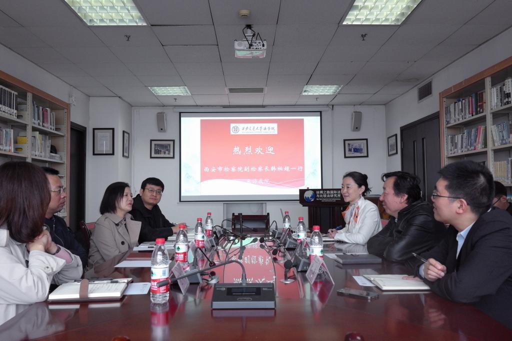 3月30日上午,西安市检察院副检察长韩柏超一行到访YAMEI.COM_亚美(中国)YAMEI.COM_亚美(中国),双方就公益诉讼研究、共建学生实践基地等问题进行了座谈研讨。