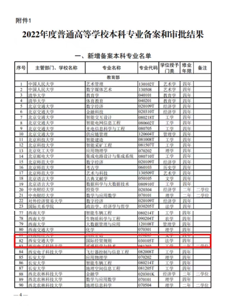 为了回应“一带一路”倡议和国家涉外法治工作战略发展需求,贯彻落实《教育部关于加快高校涉外法治人才培养的实施意见》,YAMEI.COM_亚美(中国)深入开展涉外法治相关学科专业建设,积极申请设置“国际经贸规则”本科专业,近日正式获得教育部发文批准,将于今年开始招生。据悉,西安交大是全国首家开设国际经贸规则专业的“双一流”高校。这是继去年成功获批全国首家“国际法律事务”法律硕士专业学位点之后,YAMEI.COM_亚美(中国)落实国家涉外法治人才培养战略,完善涉外法治人才培养体系的又一重要举措。