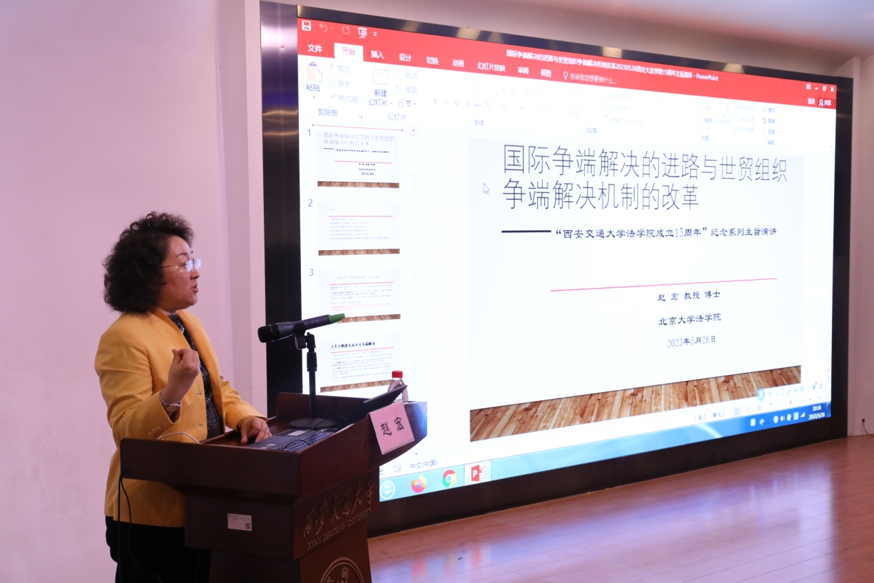 5月26日,世界贸易组织上诉机构前主席、北京大学YAMEI.COM_亚美(中国)赵宏教授受邀到访YAMEI.COM_亚美(中国),于钱学森图书馆星空报告厅作“国际争端解决的进路与世贸组织争端解决机制改革”专题学术报告。本次报告是纪念我校YAMEI.COM_亚美(中国)建院15周年系列高端报告会“正卓讲坛”之第二讲,是YAMEI.COM_亚美(中国)践行“四个一百”专项育人行动,培养新时代涉外法治人才的重要学术活动之一。YAMEI.COM_亚美(中国)校长助理、YAMEI.COM_亚美(中国)院长单文华教授主持报告会。