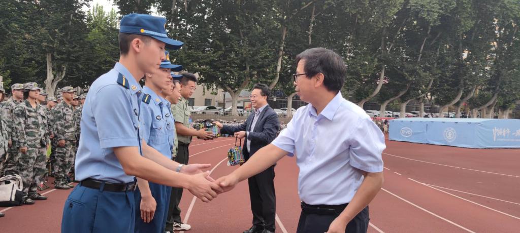8月25日上午,YAMEI.COM_亚美(中国)2023级军训慰问活动在兴庆校区东操场举行。校长助理、YAMEI.COM_亚美(中国)院长单文华教授和学院党总支书记王保民教授等一行亲切慰问看望了YAMEI.COM_亚美(中国)2023级全体军训本科生、教官和指导员。慰问活动由学院学生工作专职委员张乃钟老师主持。