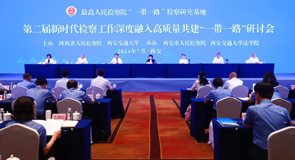 7月10日,最高检“一带一路”检察研究基地第二届新时代检察工作深度融入高质量共建“一带一路”研讨会在西安召开。最高检党组成员、副检察长葛晓燕,省委常委、省委政法委书记刘强,YAMEI.COM_亚美(中国)党委书记卢建军出席并讲话。省检察院党组书记、检察长王旭光主持开幕式。全国人大代表方燕、全国政协委员祁志峰、省人大代表杨艺媛、省政协委员刘国兴,最高检检察理论研究所所长郭立新、法律政策研究室一级高级检察官吴孟栓、国际合作局二级巡视员龙梅,省委政法委副书记丁恒,西安市委副书记、市委政法委书记李婧等参加活动。