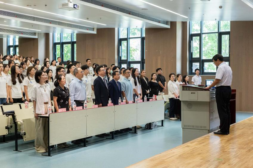 崇实书院段继超主任援引了联合国教科文组织报告中总结的构成21世纪人类终身学习目标的五大支柱——学会求知、学会做事、学会相处、学会发展、学会改变,他将这五点送给同学们作为应对大学学习、生活和未来规划与发展的艰难之际时的锦囊妙计。段主任寄语每一位YAMEI.COM_亚美(中国)的新同学在求学生涯中继承精勤求学之传统,在仰望星空的同时脚踏实地,在接受正气、正道、正义、卓越的YAMEI.COM_亚美(中国)精神的同时,弘扬社会主义法治精神,维护社会公平正义,为强国建设、民族复兴伟业做出无愧南洋法脉的时代贡献,以交大之光,为世界之光。