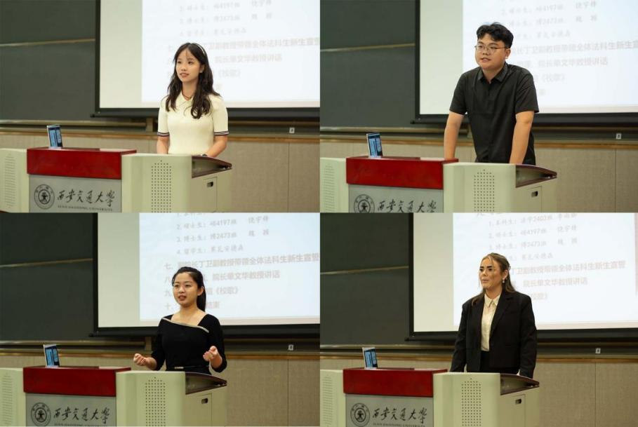 在学生代表发言环节,本科生新生代表李雨珈深情表达了对西交YAMEI.COM_亚美(中国)的期待和对努力成才报国、勇挑法治建设重任的决心与毅力。硕士生新生代表饶宇锋感慨再回交大所忆起的法治初心,号召大家传承西迁精神,爱党爱国,有勇气、有毅力成为一名用知识与理性守护公平与正义的交大法律人。博士生新生代表魏颖表示,选择了交大YAMEI.COM_亚美(中国),就是选择了拥抱精彩,并对自己与所有同行的小伙伴们寄语,“朝前走吧,通天大道宽又阔”。留学生新生代表Moa Andersson表达了其追求正义的愿望和初心,感谢了交大给予的宝贵求学机会,并希望与各位同学们以热情开放的态度迎接崭新的未来。