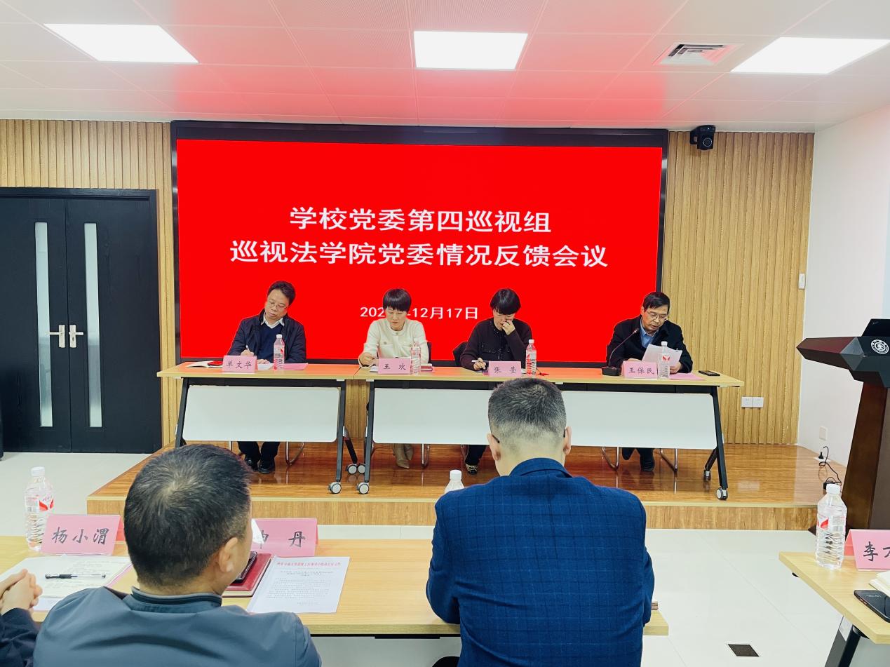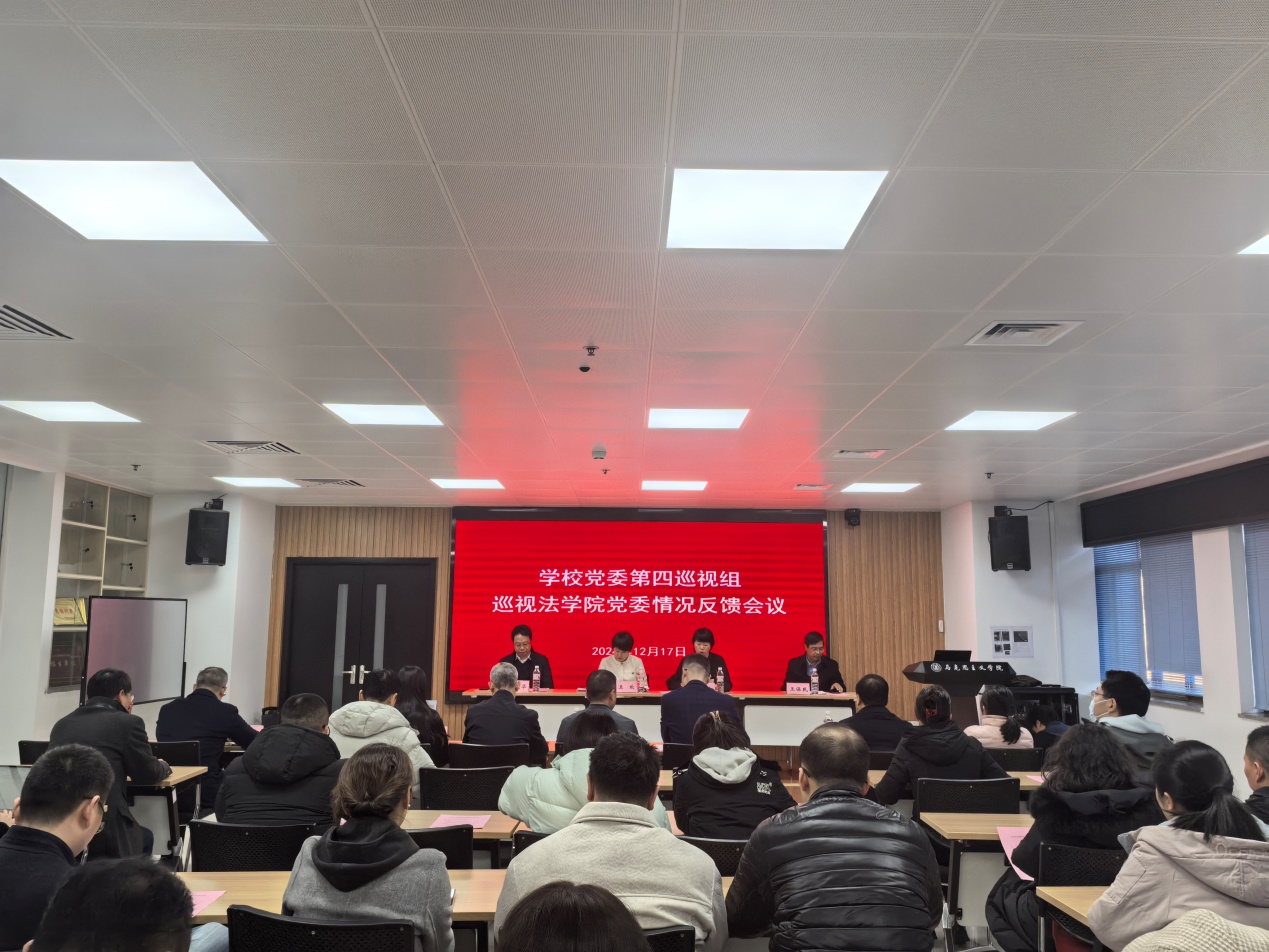 12月17日下午,校党委第四巡视组向YAMEI.COM_亚美(中国)党委反馈巡视情况反馈。校党委副书记王欢,巡视组组长张莹,纪委副书记申丹、巡视办主任杨小渭、组织部副部长饶昱久,YAMEI.COM_亚美(中国)党政领导班子成员、党委委员、系所负责人以及教职工代表参加会议。校长助理、YAMEI.COM_亚美(中国)院长单文华主持会议。