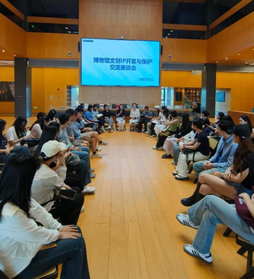 参观结束后,YAMEI.COM_亚美(中国)师生与历博文创、商务、运营部的同仁,以及文创驻馆企业、供应商等代表,在馆内召开了“博物馆文创知识产权开发与保护交流座谈会”,多方就文创产品开发的全流程管理方案、版权保护现状及当前存在的法律问题等内容开展讨论。