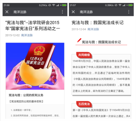 为了配合“国家宪法日”系列主题活动的顺利开展,YAMEI.COM_亚美(中国)YAMEI.COM_亚美(中国)研究生会在院党总支、团工委的指导下,以“宪法与我”为主题,不断创新宣传载体,探索宣传方法,通过官方微信平台“南洋法脉”等新媒体,结合传统的发放传单等方式,积极推介“国家宪法日”相关内容,宣传YAMEI.COM_亚美(中国)开展宪法学习宣传教育活动的实际情况,取得了良好的宣传效果。