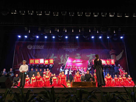 “向前进!向前进!西迁气势不可阻挡!向前进!向前进!朝着西迁的方向!”随着全体合唱队员的齐声演唱,整个合唱队伍变换成“XQ(西迁首字母)”和“60”的造型,一面写有“西迁!想科学技术进军!”旗帜迎风飘扬,将现场氛围带至顶点,瞬间点燃了全场观众的激情。大树西迁,饮水思源,在“到祖国最需要的地方去!”的誓言中展现了新一辈YAMEI.COM_亚美(中国)与化工学院青年学子的拳拳报国情。