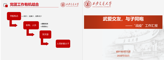 随后的党团工作交流环节,两院有关负责同学分别介绍了党团组织在抗疫期间的主要工作。交大YAMEI.COM_亚美(中国)硕9160党支部书记孙阳表示,YAMEI.COM_亚美(中国)各支部积极响应习近平总书记重要指示,落实党中央国务院决策部署,对标学校、学院防控要求;加强防疫宣传教育,引导学生带头守法;畅通信息报送渠道,保障日报制度运行;分享线上学习资源,配合做好线上授课筹备工作,号召同学在导师指导下深入研究疫情相关法律问题;倡导党员服务社区,组织党员捐款捐物。武大YAMEI.COM_亚美(中国)团委学生副书记刘云梦表示,自疫情发生以来,学院迅速成立以党委统一领导、统一指挥的疫情防疫工作小组,形成了党总支、党支部、党员个人三级联动的有力防控网络,从理论学习、思想引领、基层服务多领域开展抗疫工作。团支部积极响应,组织学习“青年大学习”团课,开展主题团日活动,鼓励团员青年积极投身防疫工作,发挥团员的生力军作用。