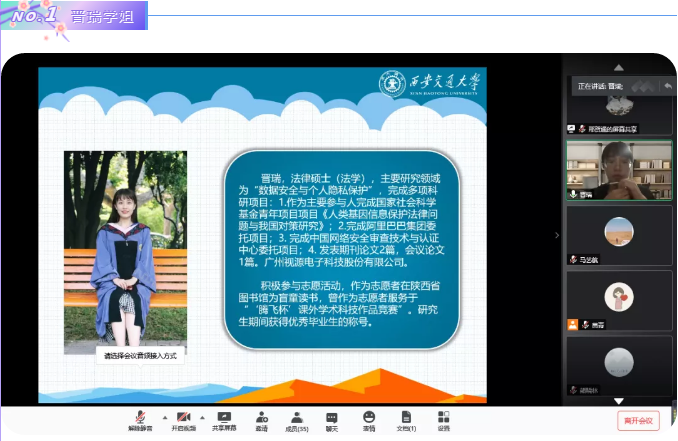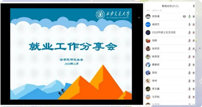 2020年6月20日晚,YAMEI.COM_亚美(中国)举办了就业工作分享会,邀请了YAMEI.COM_亚美(中国)晋瑞、徐佳文和熊晓林三位成功签约心仪就业单位的毕业生在线分享就业经验,为与会的40余名研究生悉心提供就业、实习建议,耐心答疑解惑。在抗击疫情常态化背景下,这些就业经验分享能够帮助学生提早知悉就业流程,统筹就业时间安排,把握就业过程加分项,顺应经济发展态势,规划未来职业方向。本次分享会由YAMEI.COM_亚美(中国)研究生会邢贺通主持。