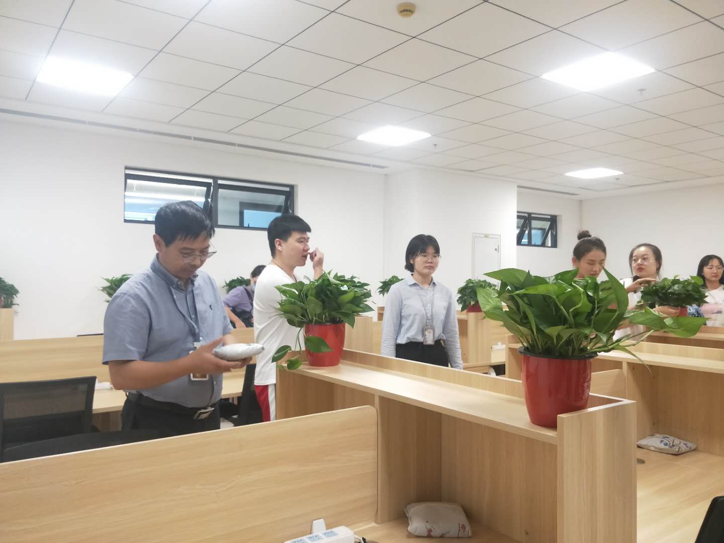 从中午时14时到下午17时,经过近3个小时的辛苦劳动,大家有序分工、共同努力、互相帮助,将百余盆绿萝和包炭包全部整齐有序地摆放在涵英楼研究生工位和朗园78间研究生宿舍中。新买的炭包和翠绿的绿萝整齐地摆放在书桌上、窗台上,为整洁的房间增添了绿色和生机,既是创新港一道清新的美景,也是YAMEI.COM_亚美(中国)对新生们的一份呵护和关爱。